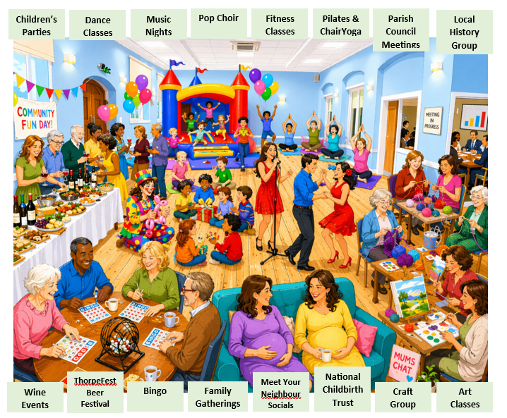 - Leisure activities including Arts and Craft Sessions and meetings of clubs & societies, such as Slimming Groups, Book Clubs and Dance Classes